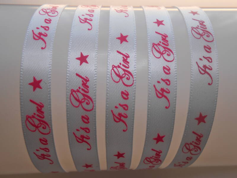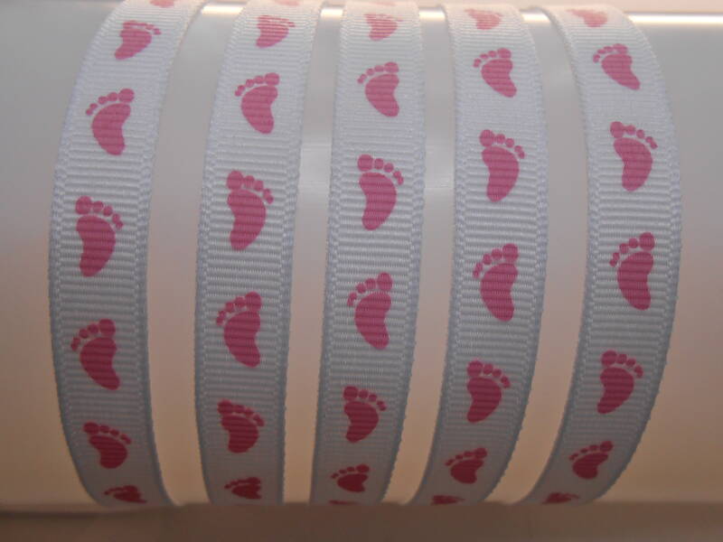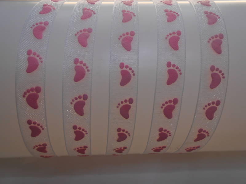 Roze met wit gestreepte grosgrain lint met bad eendjes 10 mm breed