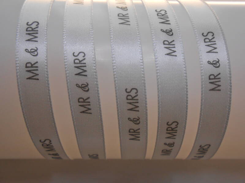 Goudkleurig satijnlint met zilver tekst Wedding Day